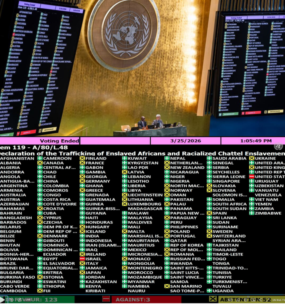 The resolution, tabled by Ghana, was adopted after 123 Member States voted in favor, marking a significant shift in the recognition and engagement by the international community on the legacy of slavery.